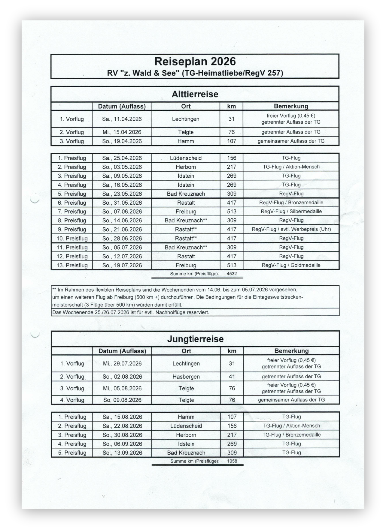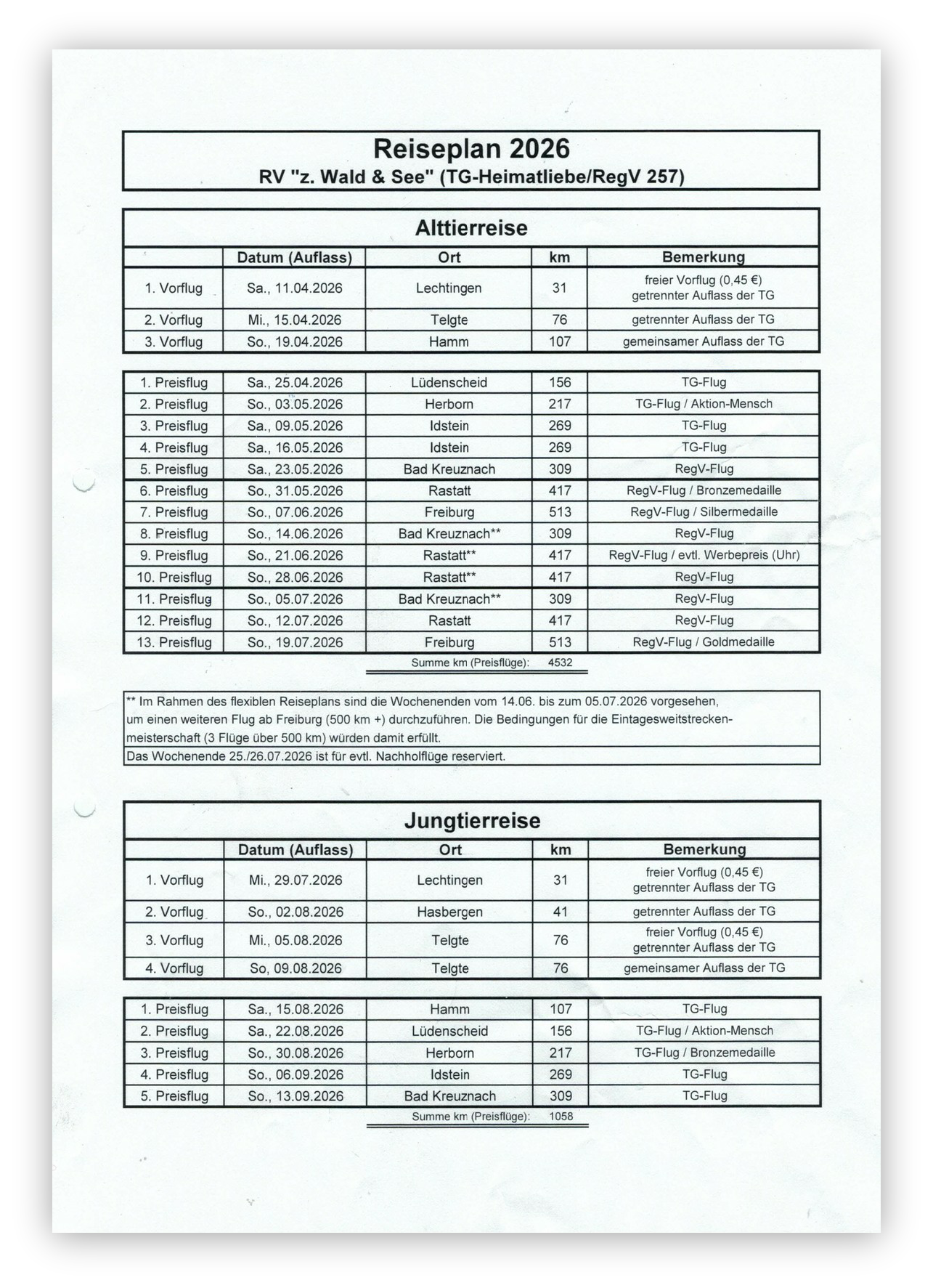 Unsere TG versucht, an den Auflasstagen mit Punkt, einen weiteren 500-KM-Flug einzubauen, wenn das Wetter es zulässt.